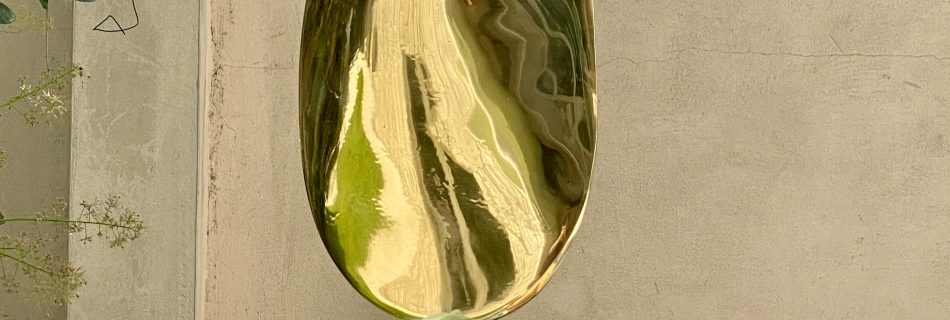 Two sculptures, Void and Milky Way, are made of bronze but finished using different surface treatments — one patinated, the other polished. Both were created in 2024.